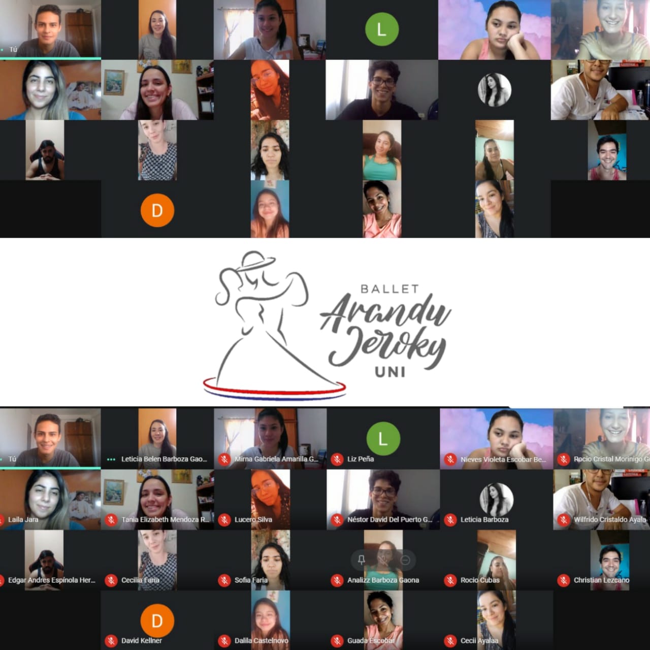 Inició el primer encuentro del Ballet Arandu Jeroky de la Universidad Nacional de Itapúa, a cargo de la Directora la Lic. Leticia Barboza, se dio la bienvenida a los nuevos integrantes del elenco, así también, las propuestas de trabajo durante el año, la modalidad de las clases esta organizada de manera presencial por medio de burbujas de ensayo y en la modalidad virtual para refuerzos de los mismos.