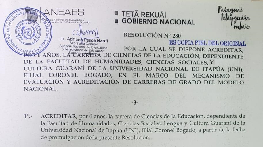 ¡Celebramos la ACREDITACIÓN por 6 años de la carrera de Ciencias de la Educación de la Facultad de Humanidades- Filial Cnel.Bogado!