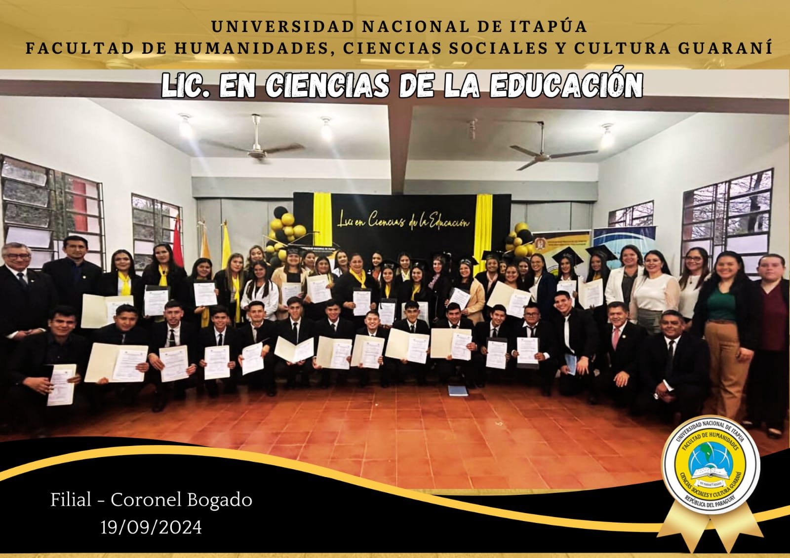 La Facultad de Humanidades, Ciencias Sociales y Cultura Guaraní desea expresar sus más sinceras felicitaciones a los nuevos licenciados en Ciencias de la Educación. Les deseamos mucho éxito en esta nueva etapa de sus vidas, confiando en que seguirán contribuyendo al desarrollo de la educación y dejando una huella positiva en la formación de futuras generaciones. ¡Enhorabuena!