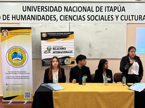 En la fecha, con el lema “Desafíos y Oportunidades de Paraguay en el contexto del Mercado Internacional, la Inteligencia Artificial y el Desarrollo humano” se dio apertura a las actividades programadas por la “Semana de las Relaciones Internacionales”. Las palabras de bienvenida estuvieron a cargo del Prof. Dr. Dionisio Fleitas Lecoski, Vicedecano de la Facultad de Humanidades. Seguidamente, estudiantes del segundo curso de la carrera de Licenciatura en Relaciones Internacionales expusieron acerca de la “Inteligencia Artificial en la toma de Decisiones Internacionales”, bajo la coordinación del Prof. Dr. Rubén Darío Avalos. Luego se desarrolló el segundo tema denominado “La Etiqueta en Eventos Oficiales y su Importancia para el Desarrollo Humano” a cargo de la Mg. Mariane Wiesenhutter, docente de la carrera. Participaron como moderadores la Abg. Sylvia Sosa y el Univ. Daniel Roa.